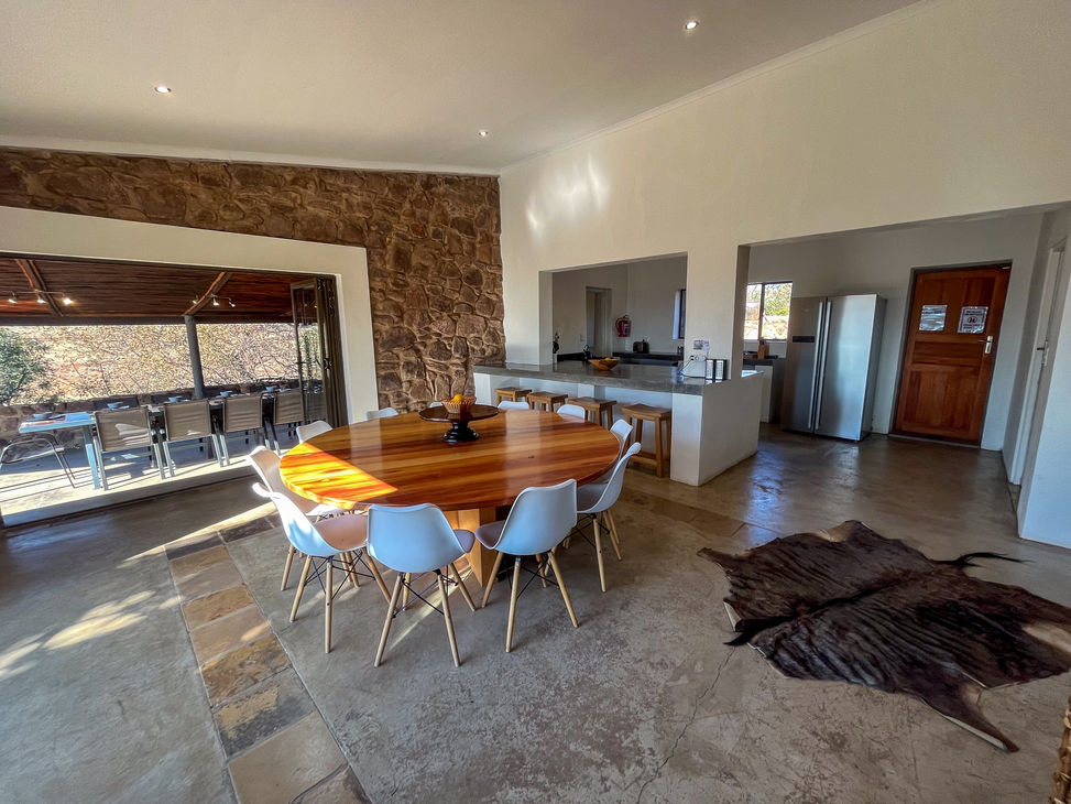 The Elandsvlei Estate Farmhouse is the perfect bush escape for larger groups or families looking to relax in a private location amongst beautiful African wildlife! The newly renovated Farmhouse boasts 5 luxury suites with ensuite bathrooms, and has a stunning modern African design. The Farmhouse includes 2 braai areas, one covered and one open air, as well as a crystal blue splash pool for escaping the heat on warm days. This is truly the perfect location to gather with friends and family in the peaceful beauty of the Waterberg mountains!